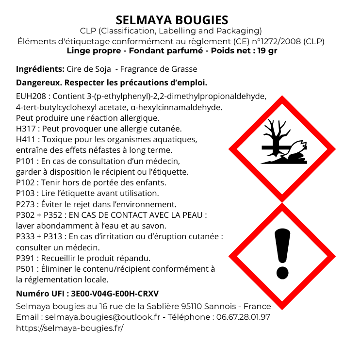 À base de cire de Colza, fragrance de Grasse et mica.